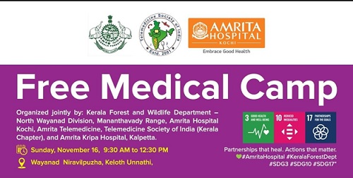 A Free Medical Camp for Tribals was conducted on November 16th 2025 at Niravilpuzha Keloth Unnathi Wayanad for Tribal people in Collaboration with Amrita Institute of Medical Science Kochi, Kerala Forest Office and Wildlife Department – North Wayanad Division (Snehahastham Project) , Amrita Telemedicine Unit, Tele Medicine Society of India Kerala Chapters, Amrita Kripa Charitable Hospital.